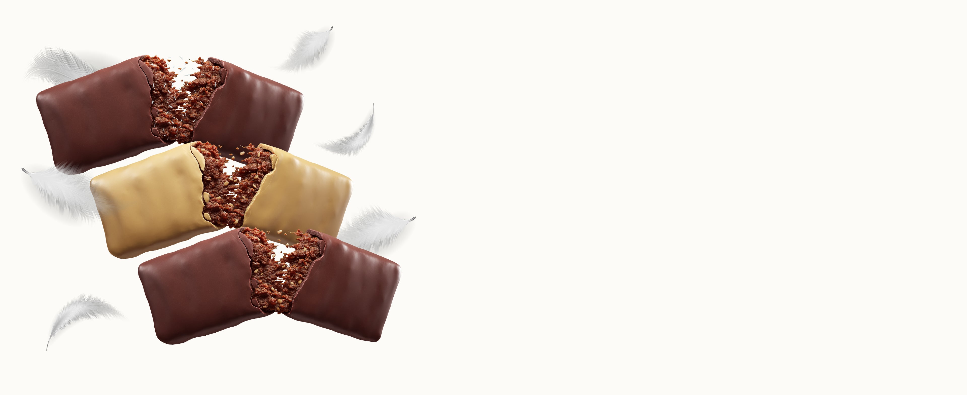 12g de proteína com dupla camada de cobertura, recheio cremoso e formato de bombom.